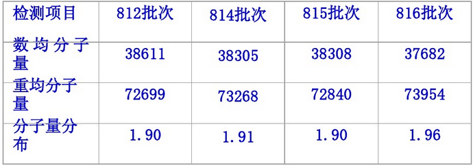 (2)第815批次料質量較差與分子質量及其分布無關。